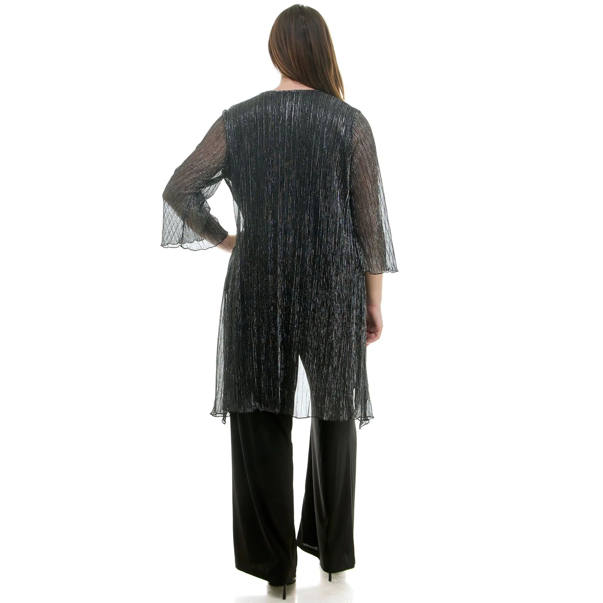 2Fer Elastic Waist Pant Set w/ Detachable Necklace in Solid Moonlight Hologram with Solid Moss Crepe, perfect easy to wear to shine for a special event.