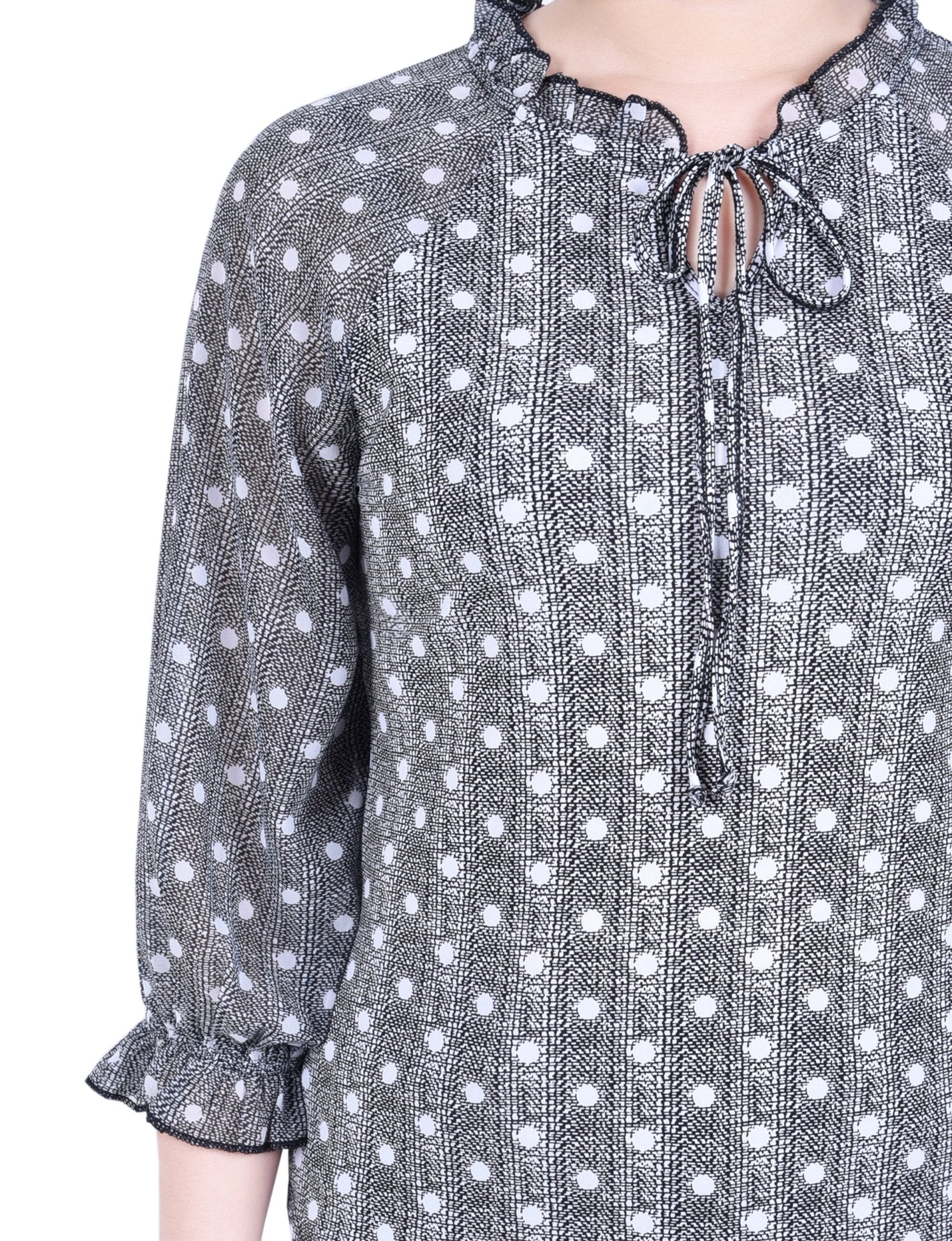 This NY Collection crepe knit and chiffon top is as comfortable as it is stylish.