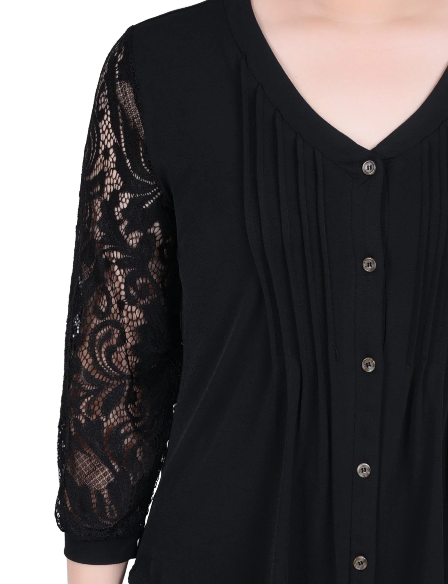 This lace-sleeved top from NY Collection is just what you need to complete your wardrobe this season. The lace adds a feminine flair while still being easy to wear.