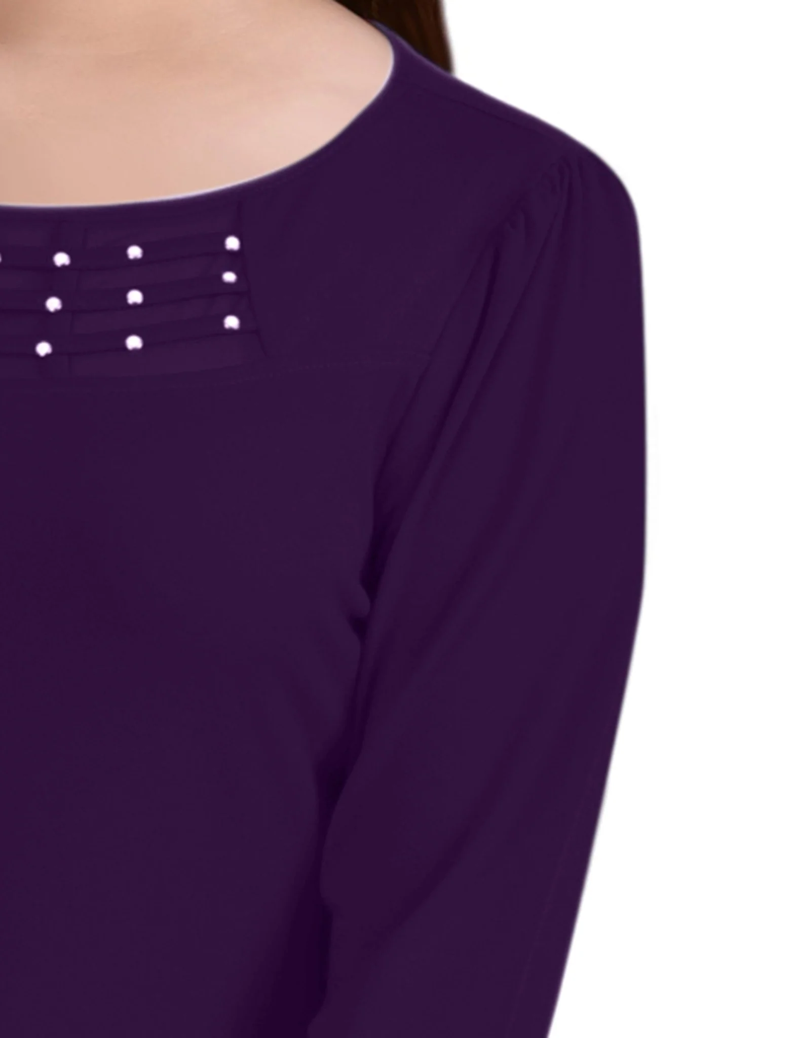 Purple 3/4 Crepe Top With Mesh Inset and Studs - Petite
