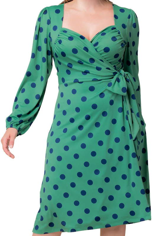 Socialite Sweetheart Dress - Plus - Green Polka Dot