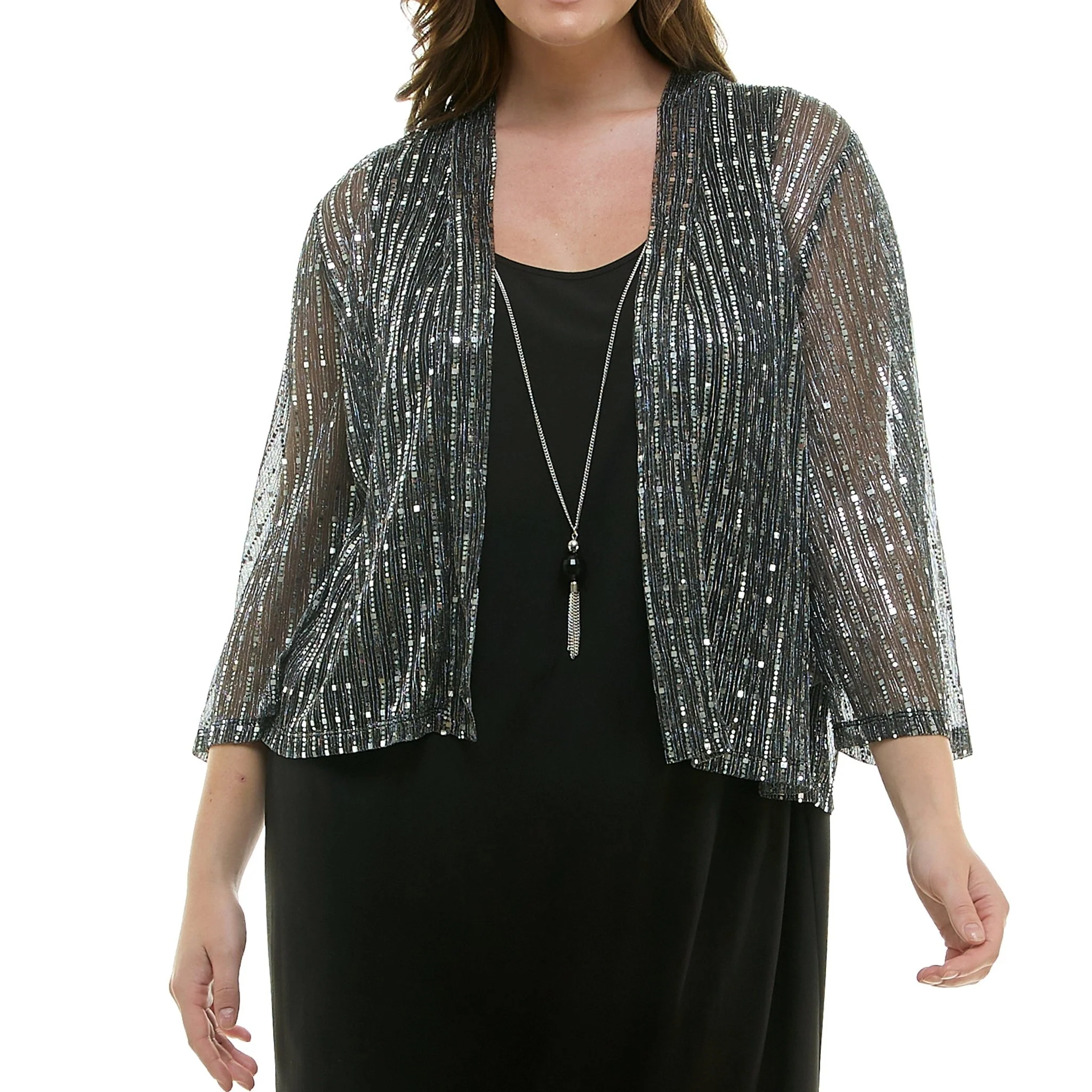 Striped Jacket Tank Dress with Detachable Necklace - Plus